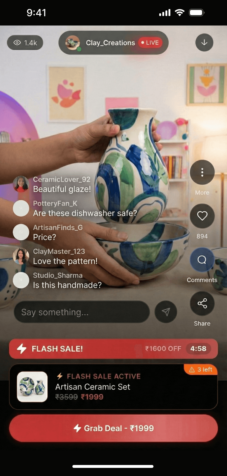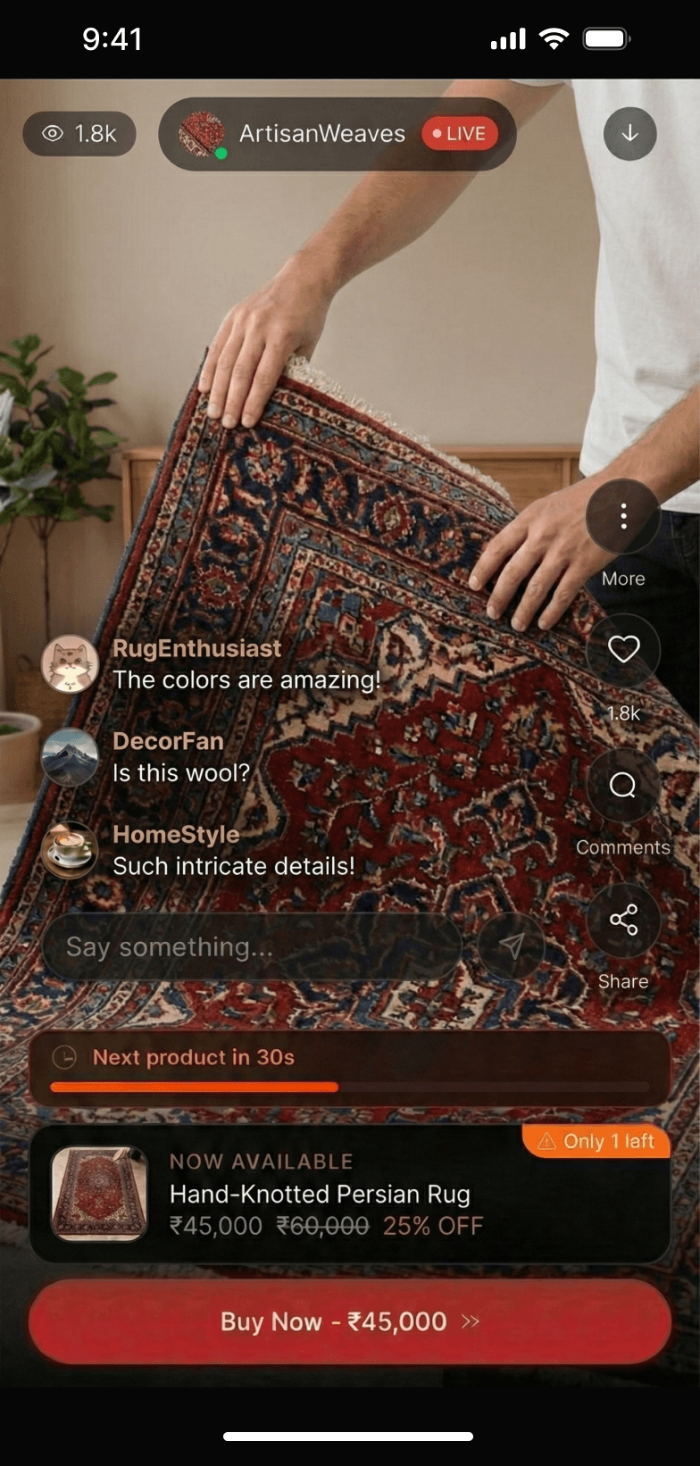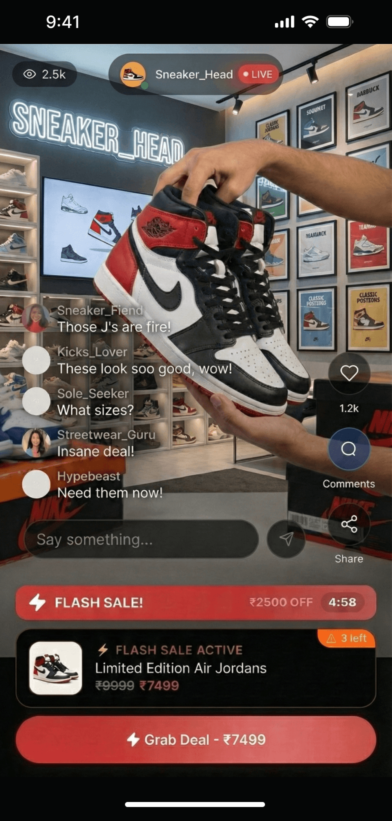 Watch sellers go live, grab deals in real time, and snatch it before anyone else